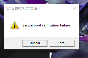 Şu son zamanlar Valorant'a main hesabımda giremiyorum. Başka hesaplarıma giriyor fakat maine hata verip bir 2 dakika sonra atiyor oyundan. "Secure Boot verification failure." diye hata atiyor. Hard disk ban mı yedim diye düşündüm ama alt hesabımda deneme amaçlı 2-3 saat oynadım sıkıntı olmadı. Çözümü varsa yazabilir misiniz? Hatanın kendisini eklerim buraya: