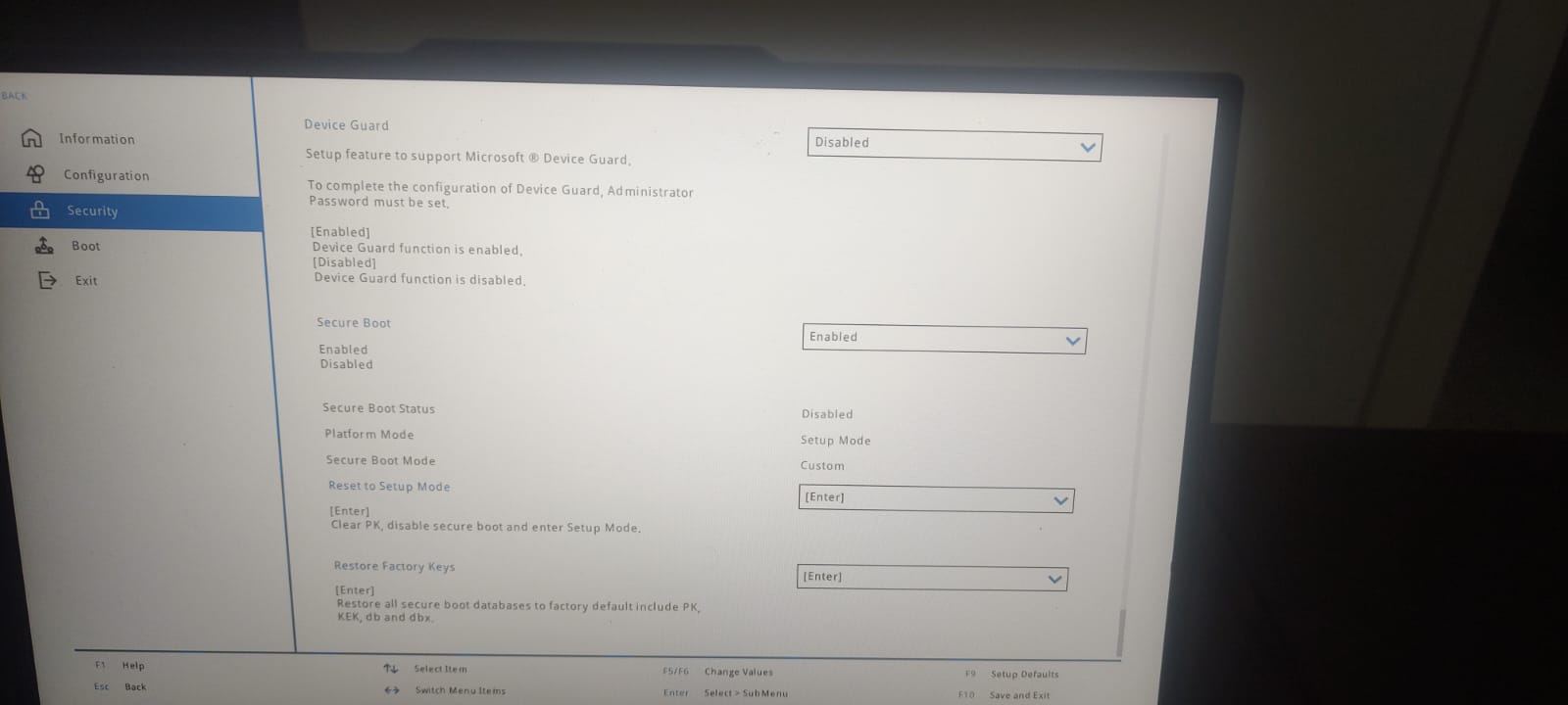 Valorant kurdum laptopa, oyuna girince ''Valorant this version of Vanguard requires UEFI Secure Boot to be enabled in order to play'' hatası alıyorum, çözüm videoları buldum ama yapamıyorum çünkü benim laptopun BIOS menüsü farklı, laptopum Lenovo LOQ, BIOS menüsü farklı, adamlar CSM modu UEFI yap diyor videoda ama bende öyle bir şey yok, bulamıyorum, fotoları da ekledim bakın. Lenovo'nun BIOS menüsünde bulamıyorum bu seçeneği.