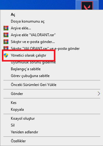4- Şimdi masaüstünde bulunan VALORANT simgesine sağ tıklayıp "Yönetici olarak çalıştır" seçeneğini seçin. Eğer izin isterse izin verebilirsiniz.