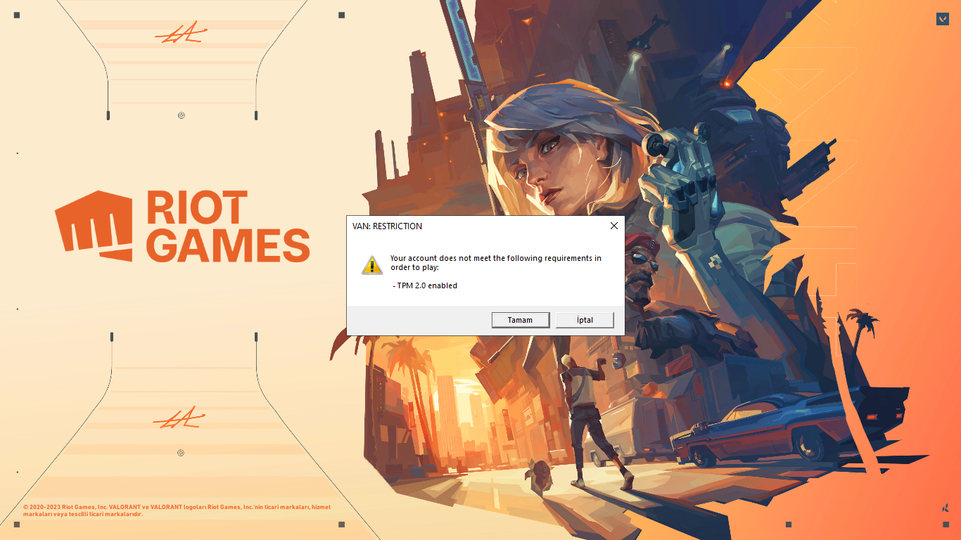 Herkese selam, almış olduğum hata "TPM 2.0 enabled" hatası. Windows 10 Pro kullanıyorum, yaklaşık 10 gün önce hiç böyle bir sorun yoktu. Aslında ilk verdiği hatada "Secure Boot" vardı onu BIOS'tan aktif ettim fakat anakartım TPM desteklemiyor BIOS'umu güncelledim yine de yok. Arkadaşım da Windows 10 Pro kullanıyor onun anakartıda TPM desteklemiyor ama hiç böyle bir hata ile karşılaşmadı. Birçok çözüm yolu denedim işin içinden çıkamadım. Hatayı ilk verdiği zamanlarda 2-3 kere Tamam'a basıp oyuna tekrar giriş yaptığım oldu hatta 3-4 map oynamışlığım bile var. Son 4 gündür hiçbir şekilde oyuna giriş yapamıyorum pat diye karşıma çıkıyor bu hata. Valorant destek ekibinin de vermiş olduğu hiçbir çözüm maalesef etki etmedi, en son "bu konuda gerekli birimlerimizi bilgilendirdik. Yaşadığın bu sorun hakkında araştırmalara başladık." dediler. Beklemek sıkıcı o yüzden konu açmak istedim. Sorunu çözebilen birileri vardır belki.