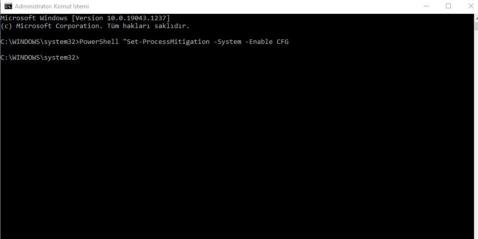 Hem bu foruma hem de internete baktığımda hatanın çözümü exploit Protection'u açarak çözülüyor. Fakat ben zamanında Windows Defender'ı kapattığım için exploit protection açılmıyor hatayı da çözemiyorum. Bunun sonrasında tekrar bir araştırma yaptım ve CMD'ye "PowerShell "Set-ProcessMitigation -System -Enable CFG" yazarak da bu hatanın çözüldüğünü gördüm. Fakat ben CMD'yi yönetici olarak çalıştırıp bu komutu yazdığımda da yine hiçbir şey olmuyor komut satırında komut çalışmamış gibi bir alt satıra geçiyor. Yine de bu komutu yazıp belki çalışır diye reset attıktan sonra hata yine çözülmedi.