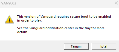 Tam tersi Secure boot'u kapatman lazım. Ayrıca anakartın nedir.Arkadaşlar bugün Windows 11 yükledim ve Valorant'a girdiğimde böyle hata veriyor BIOS'tan Secure Boot'u da açtım hala aynı.