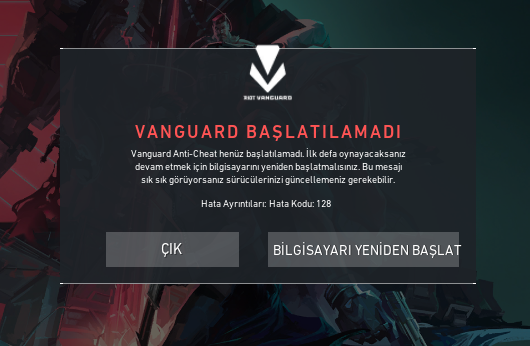 Valorant Vanguard başlatılamadı kod 128 hatası