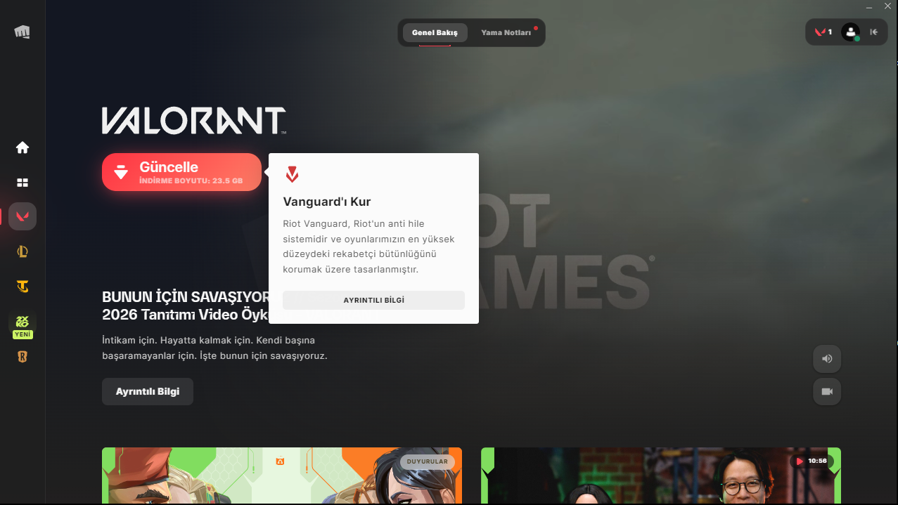 Valorant yukledim. Resimde gozuken guncelle yazan yere tıkladığımda hazirlaniyor yaziyor, sonrasinda tekrar guncelle yazisi cikiyor. Bunu nasıl cozebilirim? Önceden boyle bir şey yoktu, yardim ederseniz cok sevinirim. İyi Sosyaller.