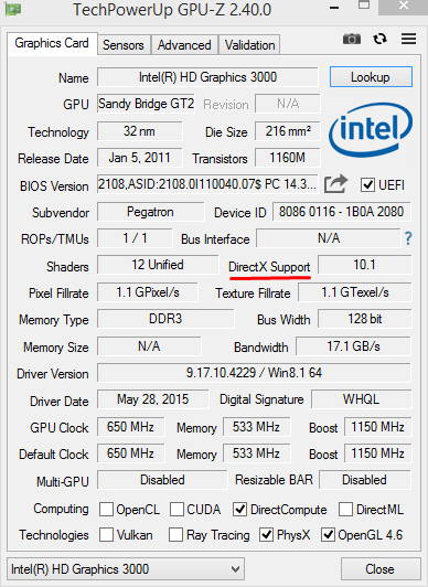 GPU-Z yazılımını çalıştırdığımızda 'DirectX Support' kısmının karşısında yer alan sayıya bakıyoruz ve bu ekran kartının DirectX 11'i desteklemediğini, DirectX 10.1'i desteklediğini görüyoruz.