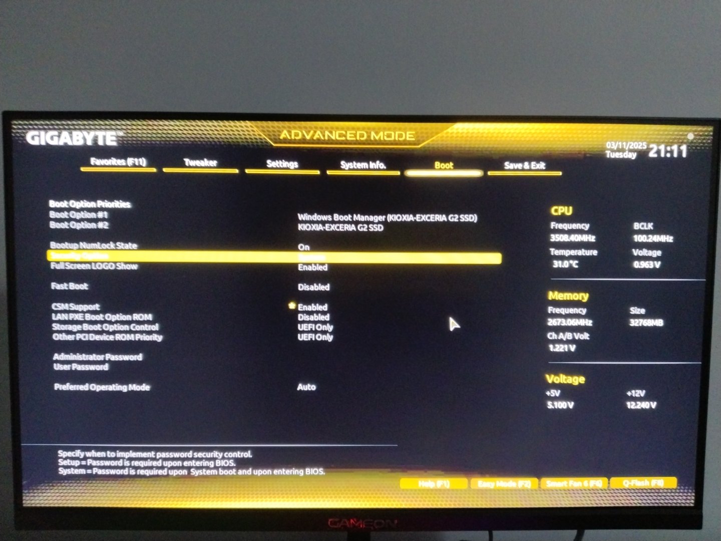 Oyuna girerken bu hatayla karşılaşıyorum. Diğer forumlarda göz attım ancak benim anakartımda Security boot veya ufi boot gibi şeyler yok şöyle bir menû var yardımcı olur musunuz?