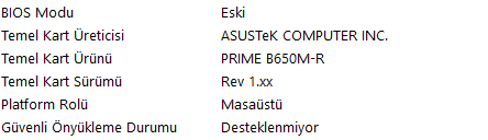 Format atmayı denedim ama cihaz Windows 11 için en düşük gereksinimleri karşılamıyor diye hata verdi. Cihazda B650M-R anakart Ryzen 5 7500F işlemci var.