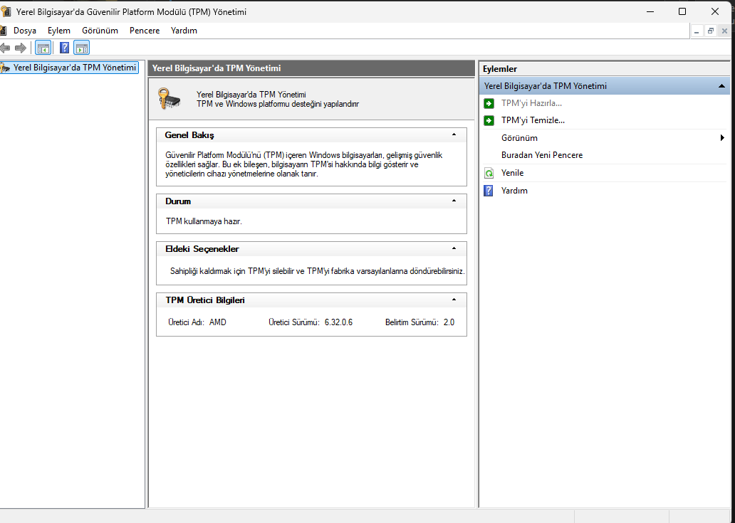 Flash bellek yapmadım. Direkt diskimden 10 GB yer ayırdım ve komut sayesinde format atıyorum. BIOS'ta Secure Boot olsa format atmama gerek kalmacak. TPM'de açık.