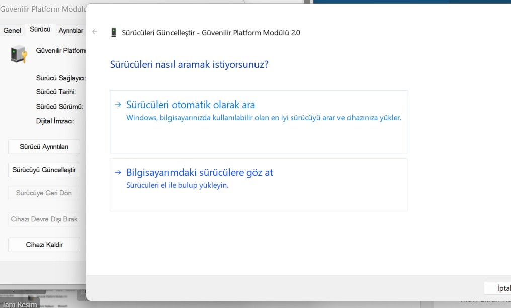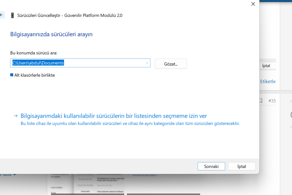 sürücü/sürücü günceleştirme/bilgisayarımdaki sürücülere göz at /bilgisayarımdaki kullanabilir sürücülerin bir listesi / sonra SS at bakalım