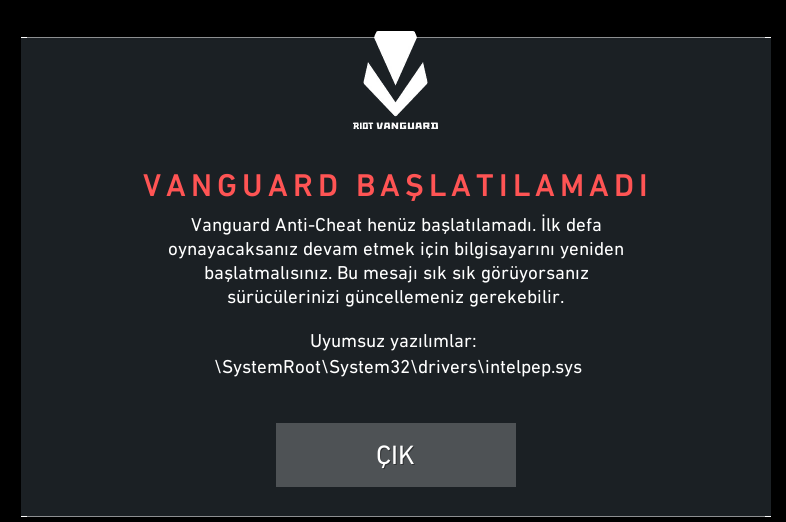 Çözüldü Vanguard başlatılamadı hatası