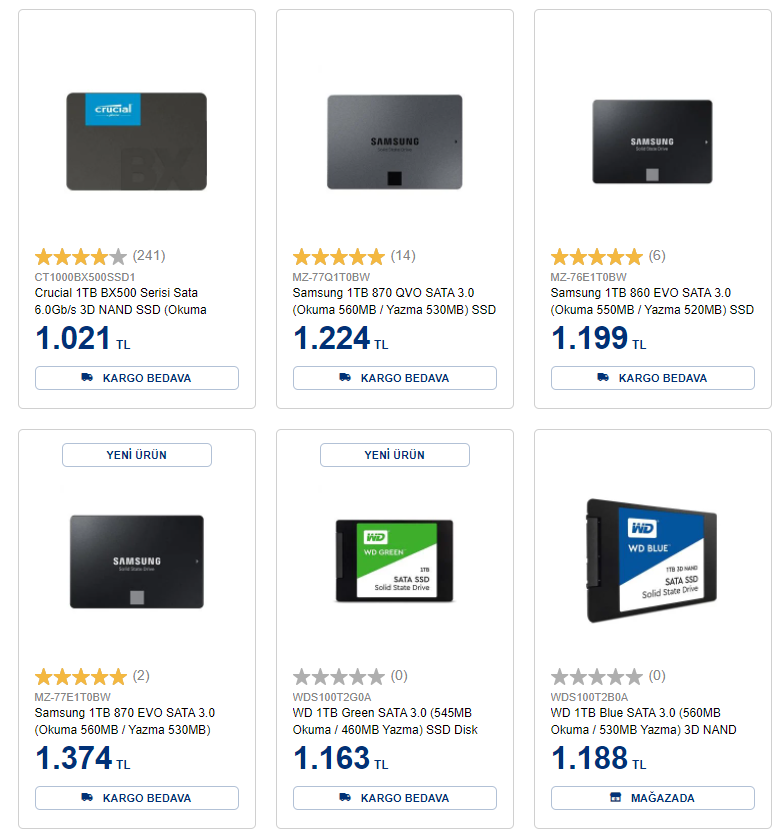 Bu SSD'ler arasından hangisini almalı? Ne kadar az para verirsem o kadar iyi. :)