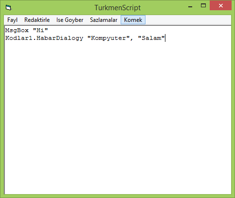 Kodlar1.HabarDialogy "Kompyuter", "Salam"
