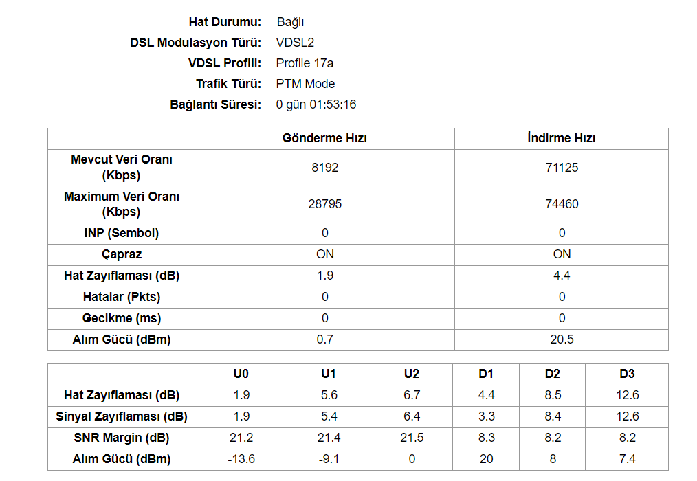 VDSL hat değerleri nasıl?