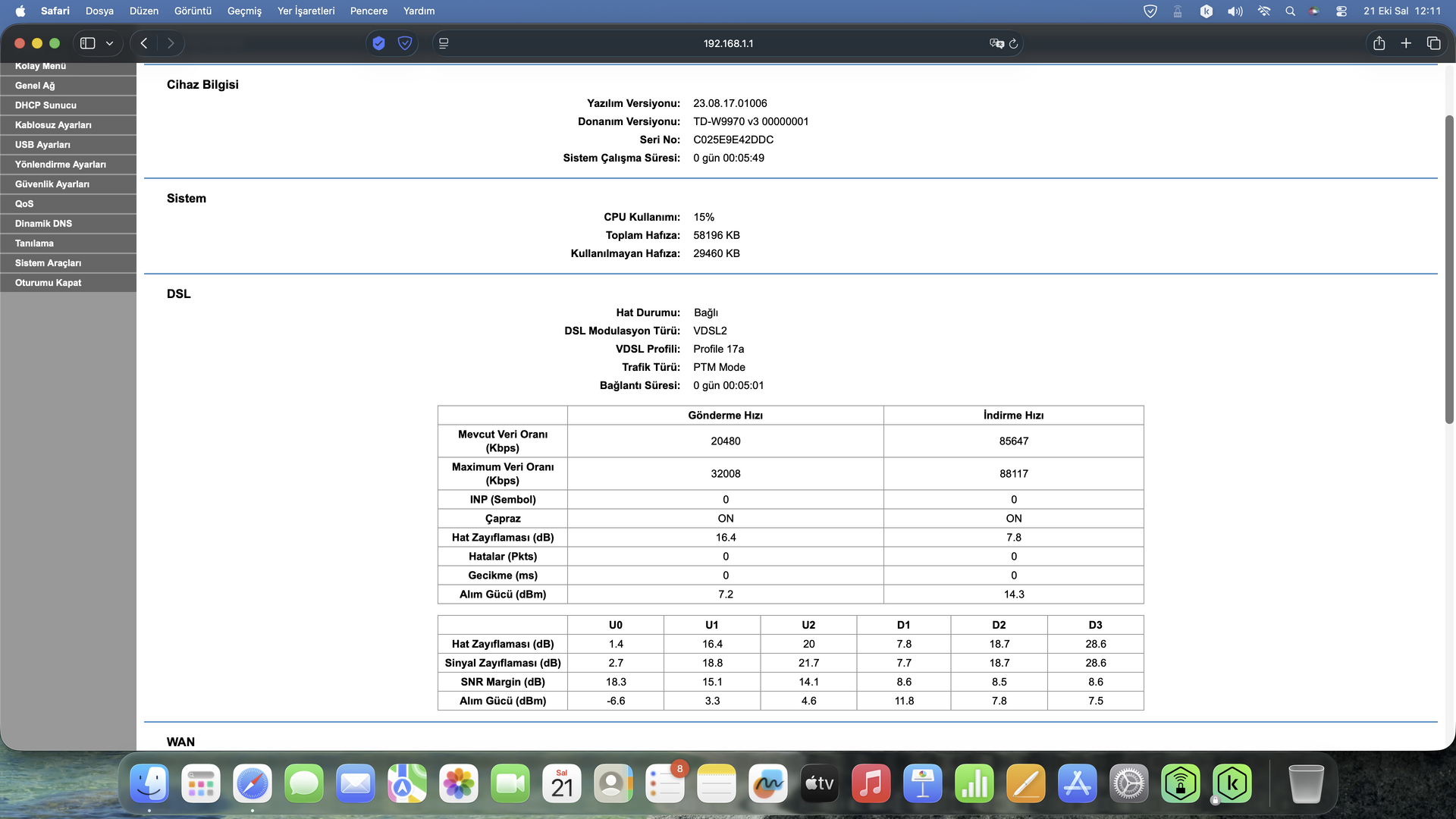 Merhaba arkadaşlar! VDSL Hat değerlerim nasıl?