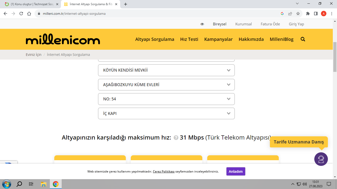hocam bura köy tesisat işi olmuyo telefon kutusundan telekom ekipleri kabloyu çekiyor pencereden falan modeme baglıyor yani