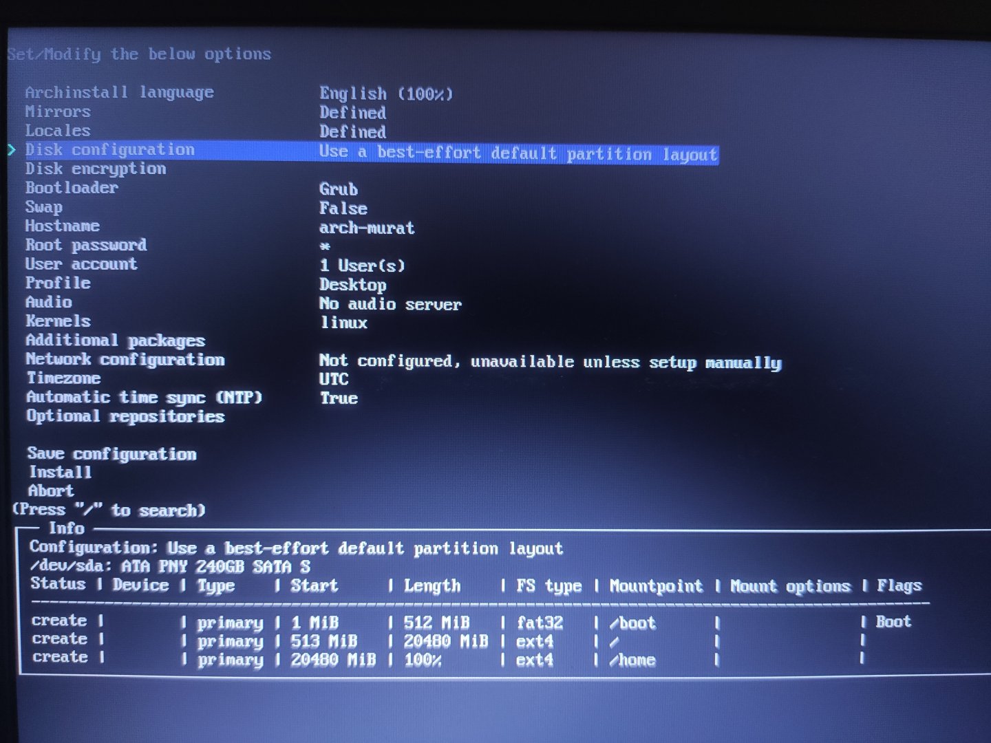 Arch Linux - Downloads adresi üzerinden Germany'den bir server seçip en üstte beliren "... X86 64.ISO" dosyası nı indirdim. 793MB.