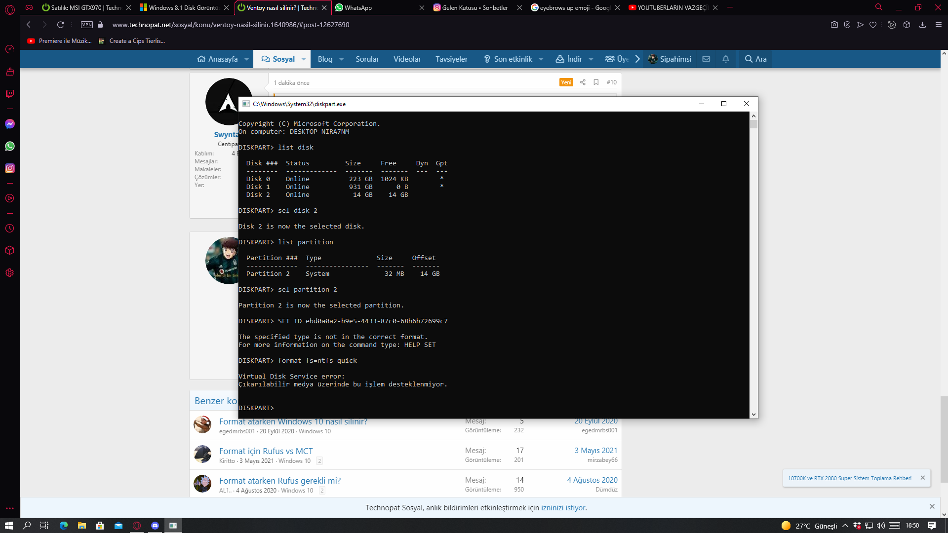 "format fs=ntfs quick" yazın. Ekran görüntüsü paylaşın.