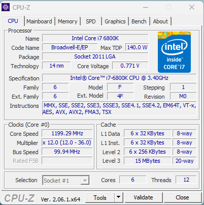 - Intel Core i7 6800K - Broadwell-E/EP SSE4