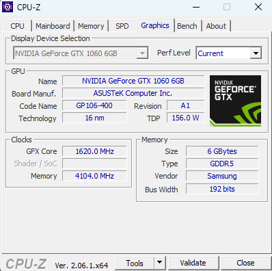 - NVIDIA GeForce GTX 1060 6GB