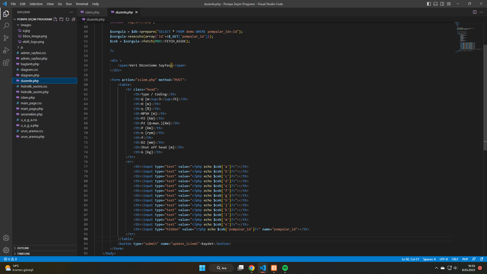 Merhaba. Veri tabanımda olan bir tabloyu PHP ile HTML dosyama çektim. HTML üzerinden bu tablodaki verileri güncellemek istiyorum. Kod çalışıyor güncelliyor ama her parametreyi 0 yapıyor. Yani aslında yanlış güncelliyor. Admin.php sayfasında düzenle butonu var ona tıklayınca duzenle.php sayfasına atıyor. Oradan kaydet butonuna tıklayınca geri admin.php sayfasına atıyor. Update işleim islem.php de yapılıyor. İzlediğim videonun tıpatıp aynısını yaptım orada çalışırken ben de sıfırlıyor hepsini.