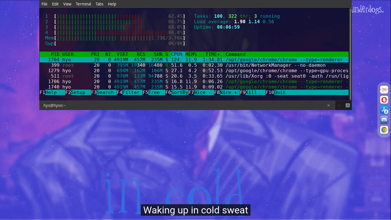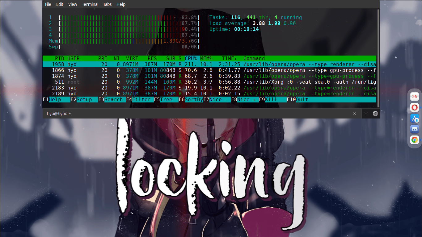Videoları Youtube üzerinden açıyorum. Arkaya başka yük bindiren programlar da gelirse sistem önce kasıyor sonra donuyor. Örneğin Discord, Stremio(Video izlemeye yarıyor) ve Kdenlive açtım.