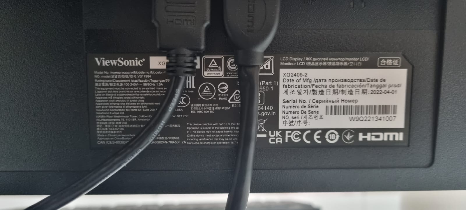 Bu arada ViewSonic XG2405 değil, güncellenmiş versiyonu olan ViewSonic XG2405-2.. Fiyatı diğer satıcılara göre çok uygun olduğu için şüphelenmiştim özellikle kontrol ettim. Monitörün arkasındaki etiketlerden kontrol ettim.