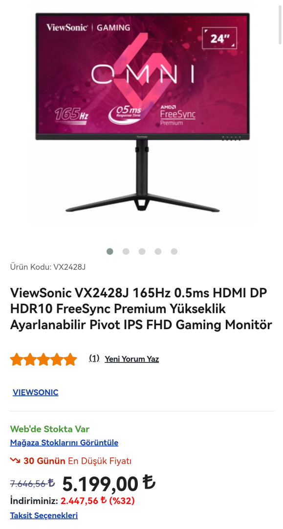 4.6k tl bu 2 monitör de 5.2k tl msi viewsonic ve aoc monitörler arasında kalsaydınız hangisini tercih ederdiniz?Fiyatları bir tık tuzlu. İtopya'dan G2412 bakabilirsin.