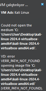 VirtualBox Kali Linux başlatılırken hata veriyor