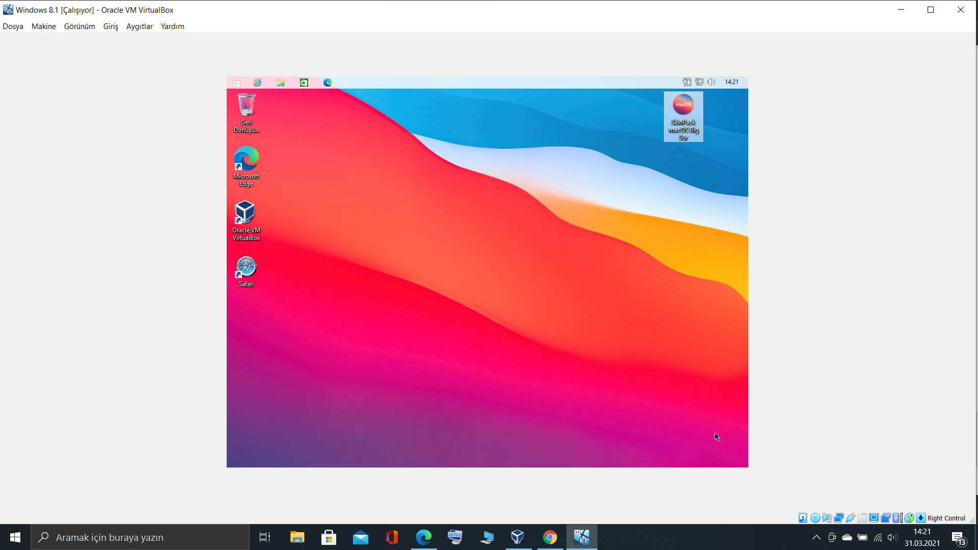 Bu VirtualBox için. Extension Pack'siz.