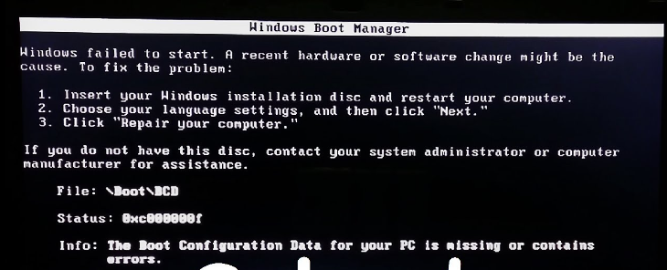 İnfo: The boot Configuration data for your PC is missing or contains error.