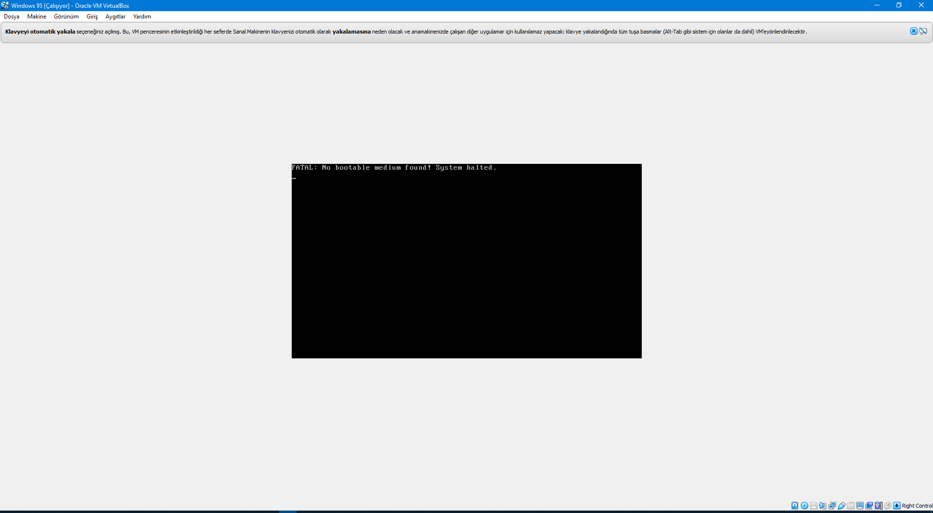 Virtualbox uygulaması ile Windows 95 kuruyordum ama şöyle bir hata çıktı:
