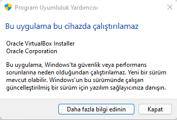 Programa sağ tık yapın ve özelliklere tıklayın. Uyumluluk sekmesinde uyumluluk modunu Windows 8 olarak seçip açmayı deneyin. Eğer olmazsa muhtemelen VirtualBox destek getirmemiştir.
