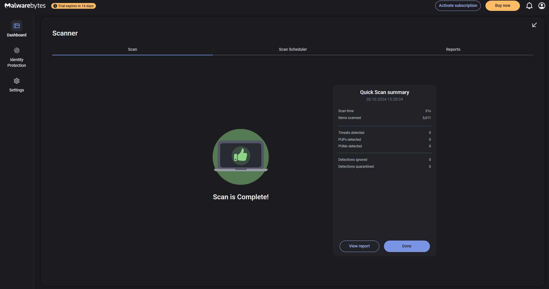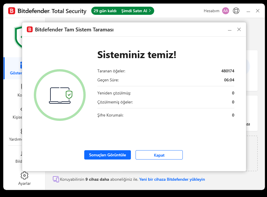 Bilgisayarı defalarca tarayıp sorun olmadığını belirtmişsiniz. Bilgisayarı rahatça kullanabilirsiniz.