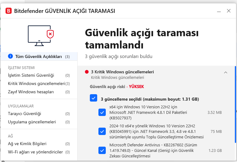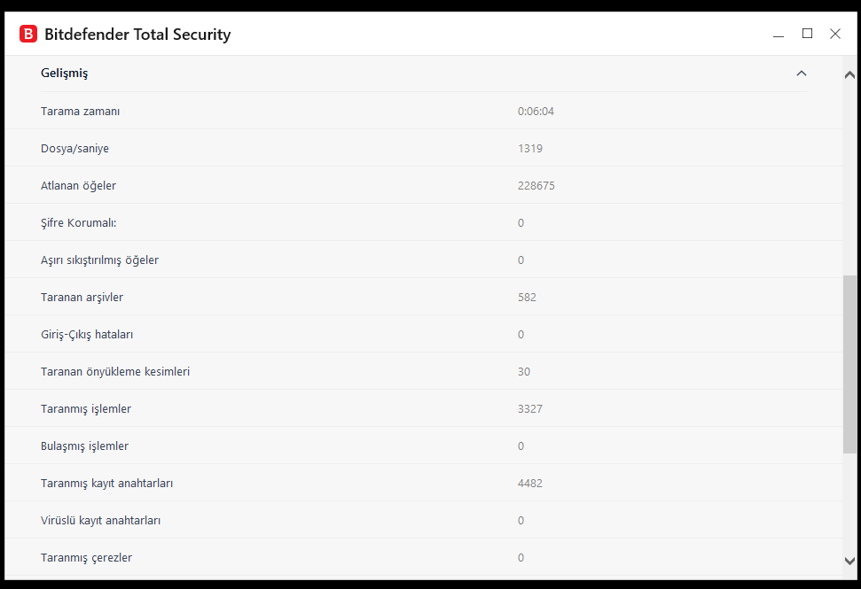 Sonrasında, Kaspersky’ın trojan olarak tespit ettiği kısmı tekrar taradım ve bir sorun bulunmadı. Ardından, Kaspersky, Malwarebytes ve Bitdefender ile birkaç defa daha tam ve hızlı taramalar yaptım. Sonuçları aşağıya resim olarak ekliyorum. Ayrıca, Bitdefender bir güncelleme olduğunu söylüyor, daha yeni güncelleme yaptım ama tekrar var diyor. Bunun için öneride bulunabilir misiniz? Bitdefender ayrıca bazı dosyaları "atlanan dosya" olarak gösteriyor, bu nedir? Bunun da fotoğrafını aşağıya ekledim.