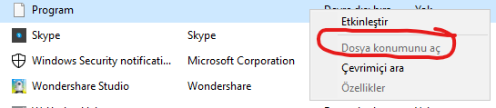 Pardon görmemişim. Görev yöneticisinde programa sağ tıklayıp dosya konumunu aç deyin