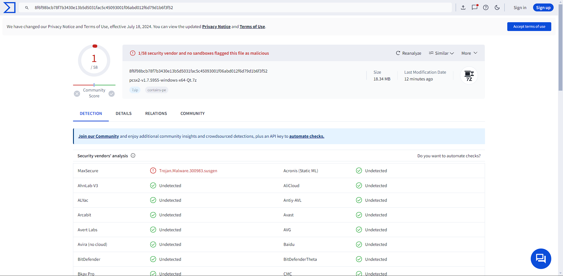 Çözüldü VirusTotal sonuçları 1 trojan bulundu