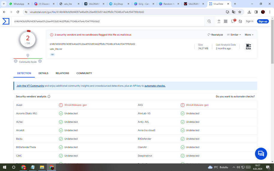 Merhaba arkadaşlar, böyle bir dosya attı arkadaşım ve false pozitif dedi ama size de bir sorayım dedim pek güvenemedim. Size virüs var mı?
