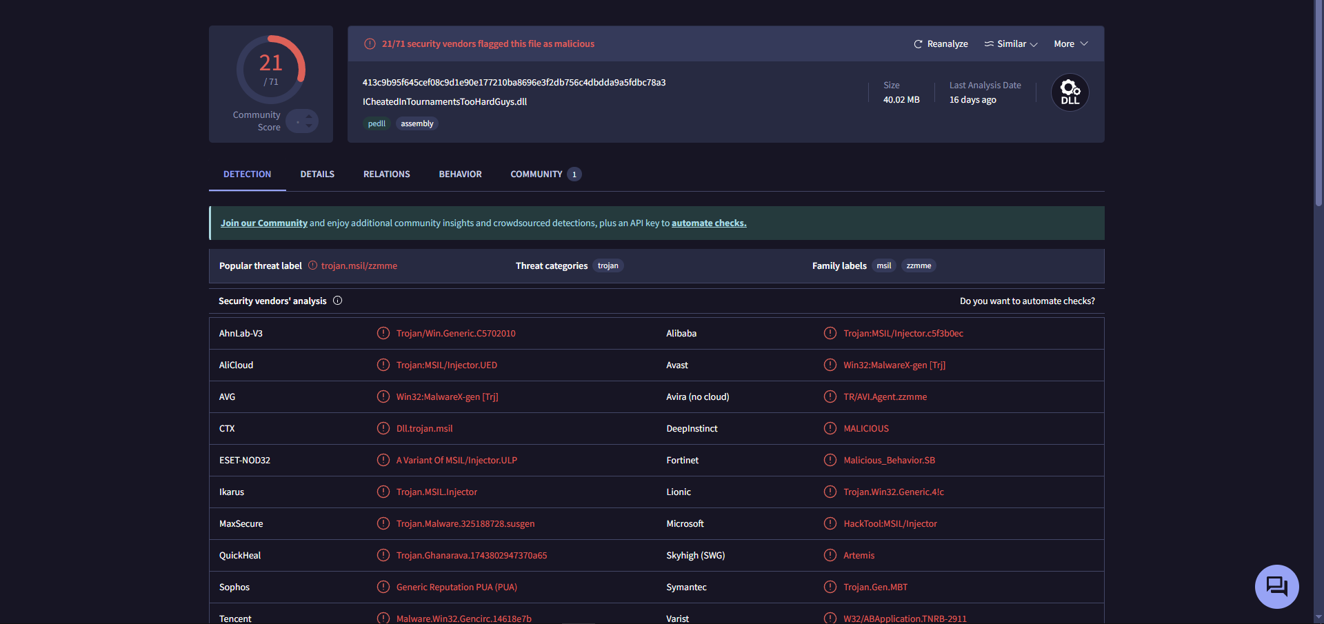 Oyunun mod menüsü için DLL indirdim. Sizce false positive mi yoksa gerçekten trojan mi? Anlayan kişiler cevaplarsa sevinirim.