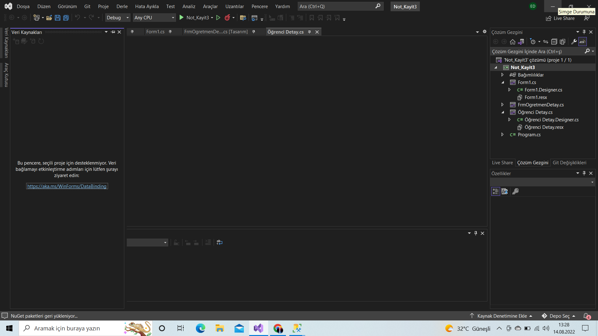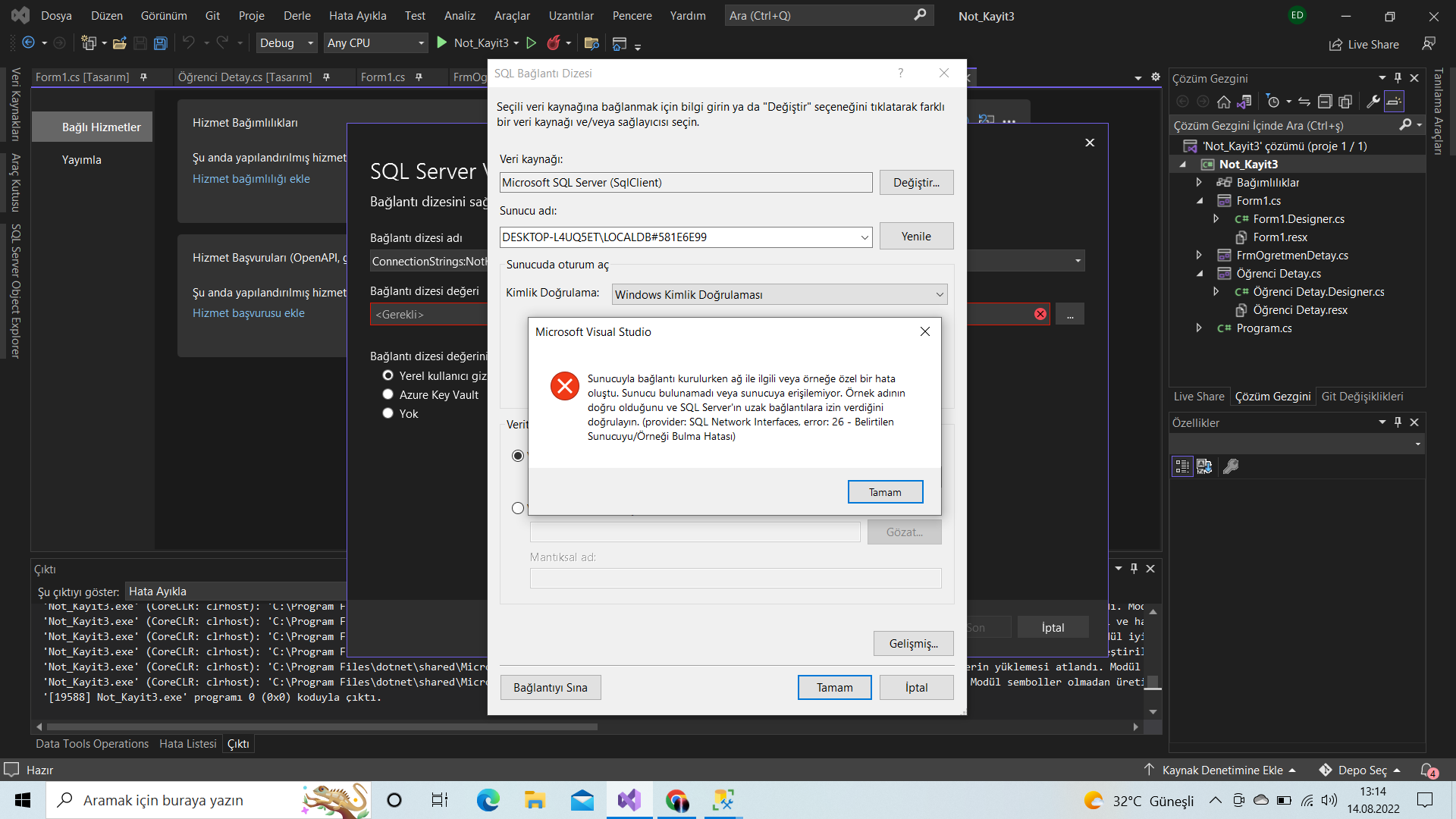 Visual Studio 2022 uygulamasında proje kısmında yeni veri kaynağı ekleme kısmında veri kaynağı eklemede bağlantı hatası ile karşılaşıyorum.
