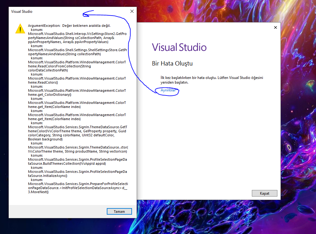 Merhaba arkadaşlar, şu an da Visual Studio 2019 Pro versiyonunu kurmakla uğraşıyorum. Programı sorunsuz kurdum, girişleri yaptım ancak giriş sırasında böyle bir hata ile karşılaşıyorum. Onarmayı denedim ancak sonuç aynı.