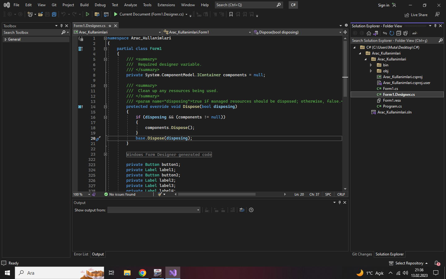 Attığım 1. fotoğraftaki gibi gözükmesi lazım form1Designer.cs'in, ama attığım 2. fotoğraftaki gibi gözüküyor.
