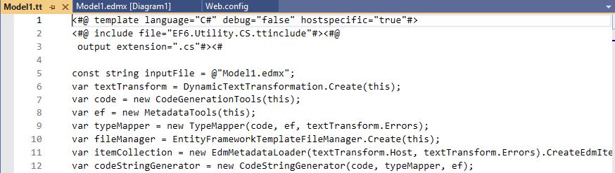 kodlarla değiştirdim ki burada aslında sadece generationEnvironment kodu değişmiş oluyor. İşlemden sonra model altında veritabanına ait tablolar geldi ve sorun kalmadı.