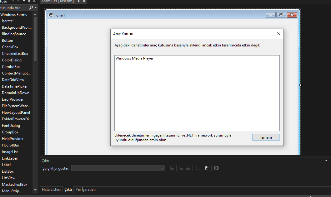 Visual Studio Media Player eklenmiyor