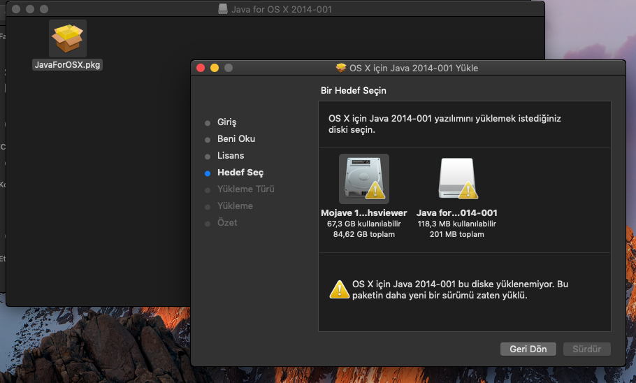 VMware workstation üzerine macOS 10.14.3 Mojave kurulumunu gerçekleştirdim fakat javaforosx2014-001 sürümünü kurmam gerekli fakat aşağıdaki gibi bir hata ile karşılaşıyorum. Ne yapmam gerekli? Çünkü kullanacağım program javaforosx2014-001 destekliyor onun haricinde yeni Java sürümüyle program çalışmıyor yardımlarınızı bekliyorum.