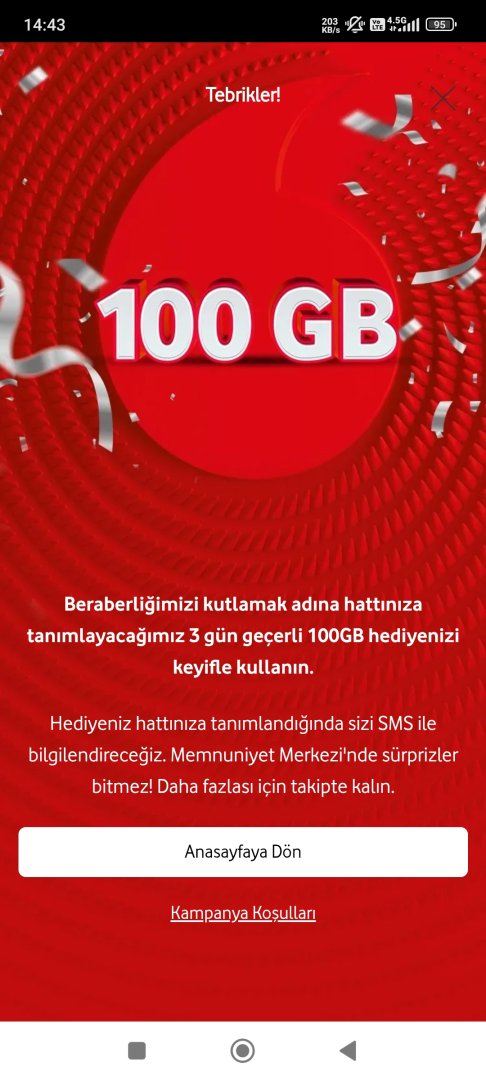 Bu arada kolay paket kısmında 3 günlük 3GB hediye daha verdi bana.