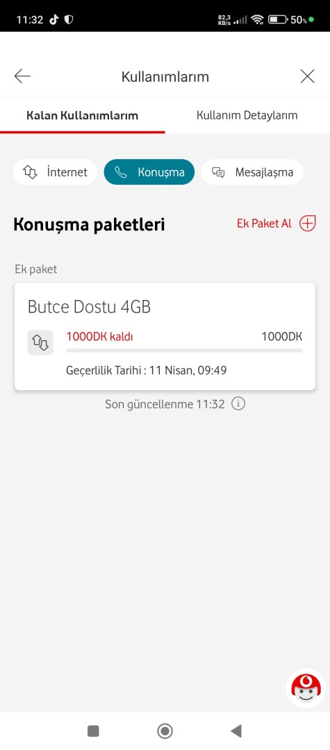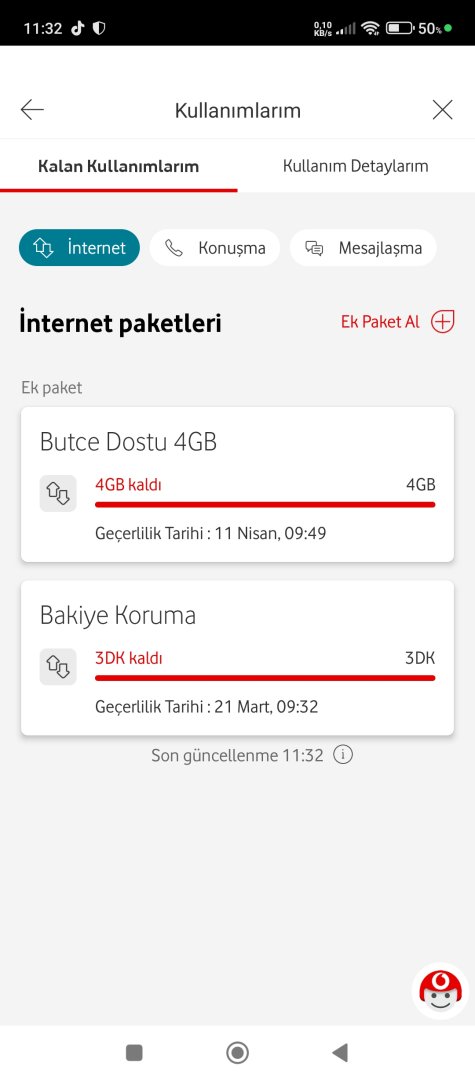 Vodafone pakettin altında kırmızı çizgi yok ama paket var diyor resimlerdeki gibi.
