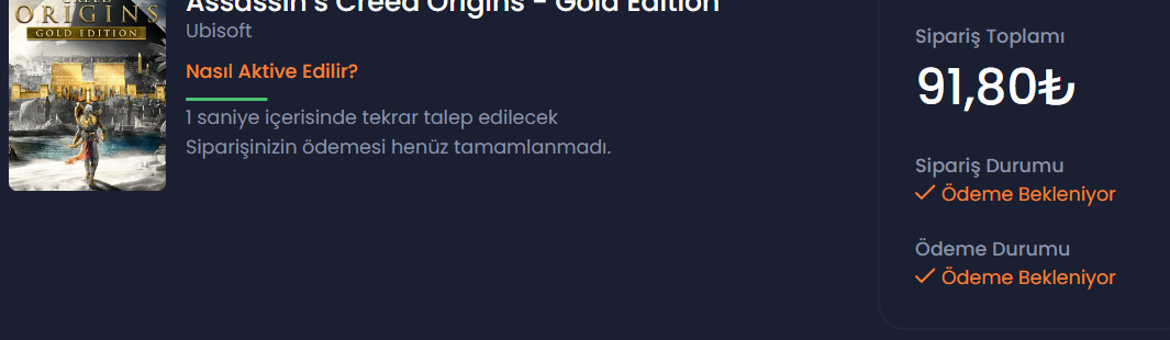 Voidu'dan 91 TL'ye AC Origins Gold Edition almaya çalışıyorum ancak kart kabul etmiyor. Birkaç saattir ara ara deniyorum ama sürekli "payment unsuccessful. Try again." diyor. Papara kartım kabul edilmeyince kredi kartı kullanmayı denedim yine aynı hatayı verdi, iki karttada yeteri kadar para var ve yurt dışına açıklar daha dün Voidu'dan satın alım yapmıştım.
