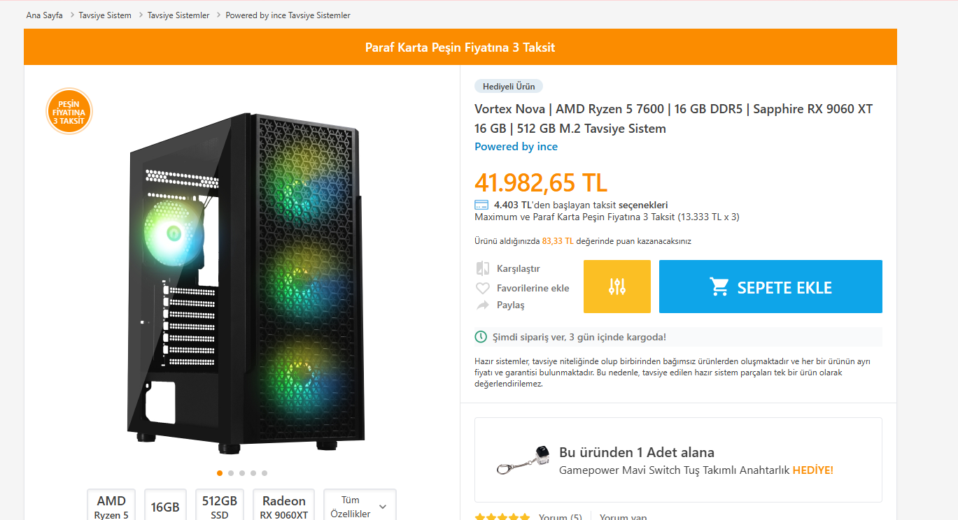 Sapphire Pulse AMD Radeon RX 9060 XT 11350-03-20G 16GB OC GDDR6 128Bit Gaming (Oyuncu) Ekran Kartı