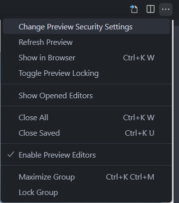 Şu eklentiyi kullandığınızı tahmin ediyorum çünkü VS Code içinde ön izleme sekmesi açan bir bunu gördüm: