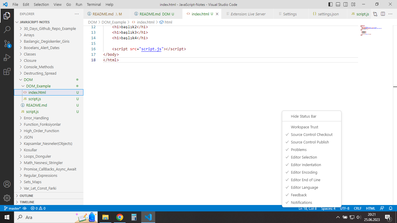 Merhaba. VSC Live server tepki vermiyor. Open with Live server tıklanınca hiçbir etkileşim olmuyor. Kaldırıp tekrar kurdum. VSC yeniden başlattım. Yine aynı durum. Nasıl çözebilirim? Kurulu olduğu halde Go Live yazısı bile yok. Open with Live server dediğim zamanda sonuç değişmiyor.